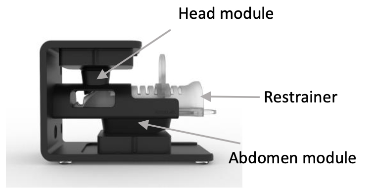 Les dispositifs précliniques RGn530/RGn535 sont adaptés à la petite taille des souris et conçus pour les immobiliser de manière sûre et sécurisée. Ils tiennent compte des principes du bien-être animal, en veillant à ce que les souris ne ressentent qu’un inconfort minimal pendant les séances. Les dispositifs, comprenant une navette de contention, sont composés de deux modules : soit crânien et abdominal (RGn530), soit dorso-ventral (RGn535). Le module abdominal ou dorso-ventral est ajustable afin de s’adapter à la morphologie de la souris tandis que le module crânien est fixe, la tête de l’animal ne variant pas selon sa corpulence.